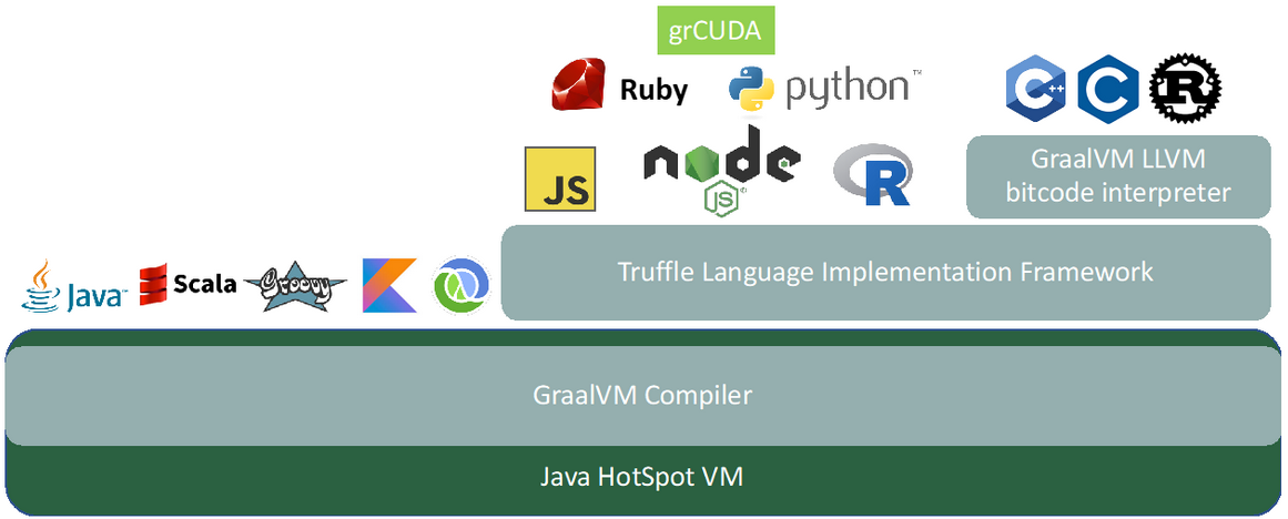 - Contrairement à la JVM, GraalVM supporte différents langages